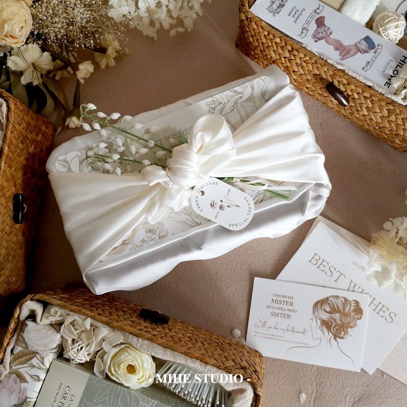 淘宝MIBOX轻奢伴手礼,森系奶白色花语草编篮风吕敷婚礼伴娘女士商务伴手礼闺蜜生日礼物
