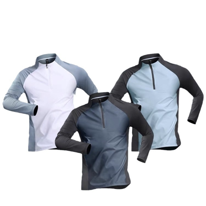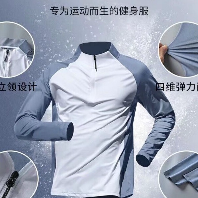 健身服套装男速干训练宽松立领长袖半拉链跑步上衣新款运动服男生