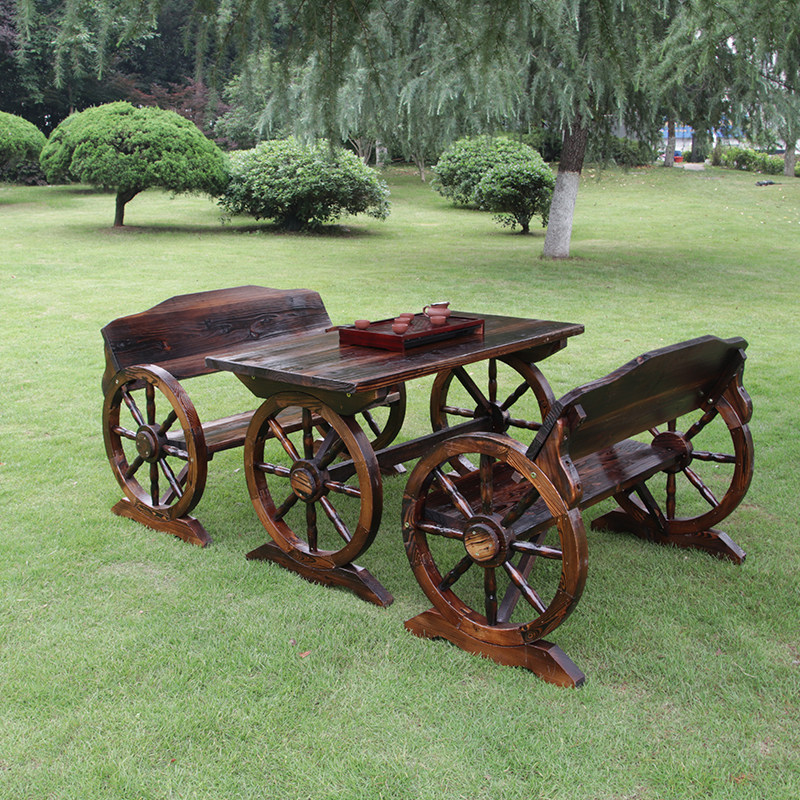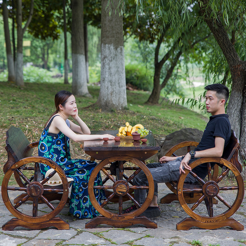 淘宝冬天的火,户外碳木化桌椅休闲庭院桌椅防腐木酒吧桌椅双人花园桌椅车轮桌椅