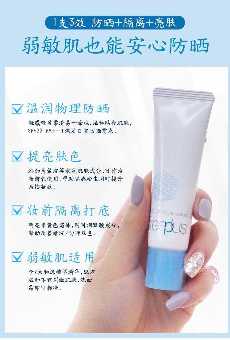 淘宝专柜正品小样假一赔三,新品!芙丽芳丝沁润隔离防晒霜30g SPF22 PA+++修颜提亮 脸部专用