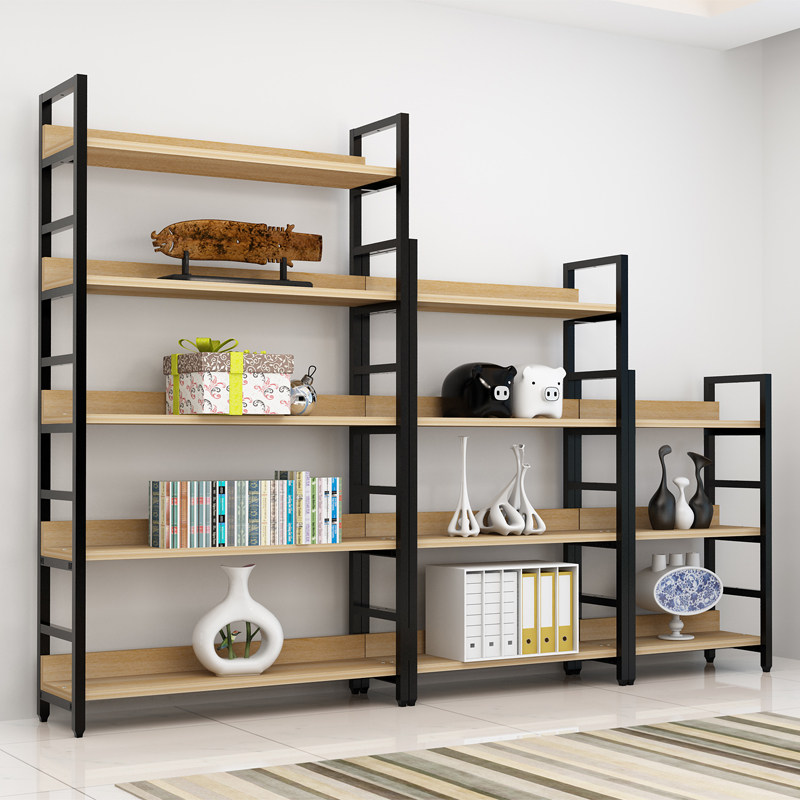 创意钢木书架置物架简约现代隔断客厅储物陈列柜简易展示架子落地