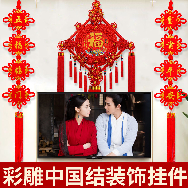 天猫全彩旗舰店,新款中国结挂饰客厅高档大号桃木电视墙入户玄关福字挂件过年装饰