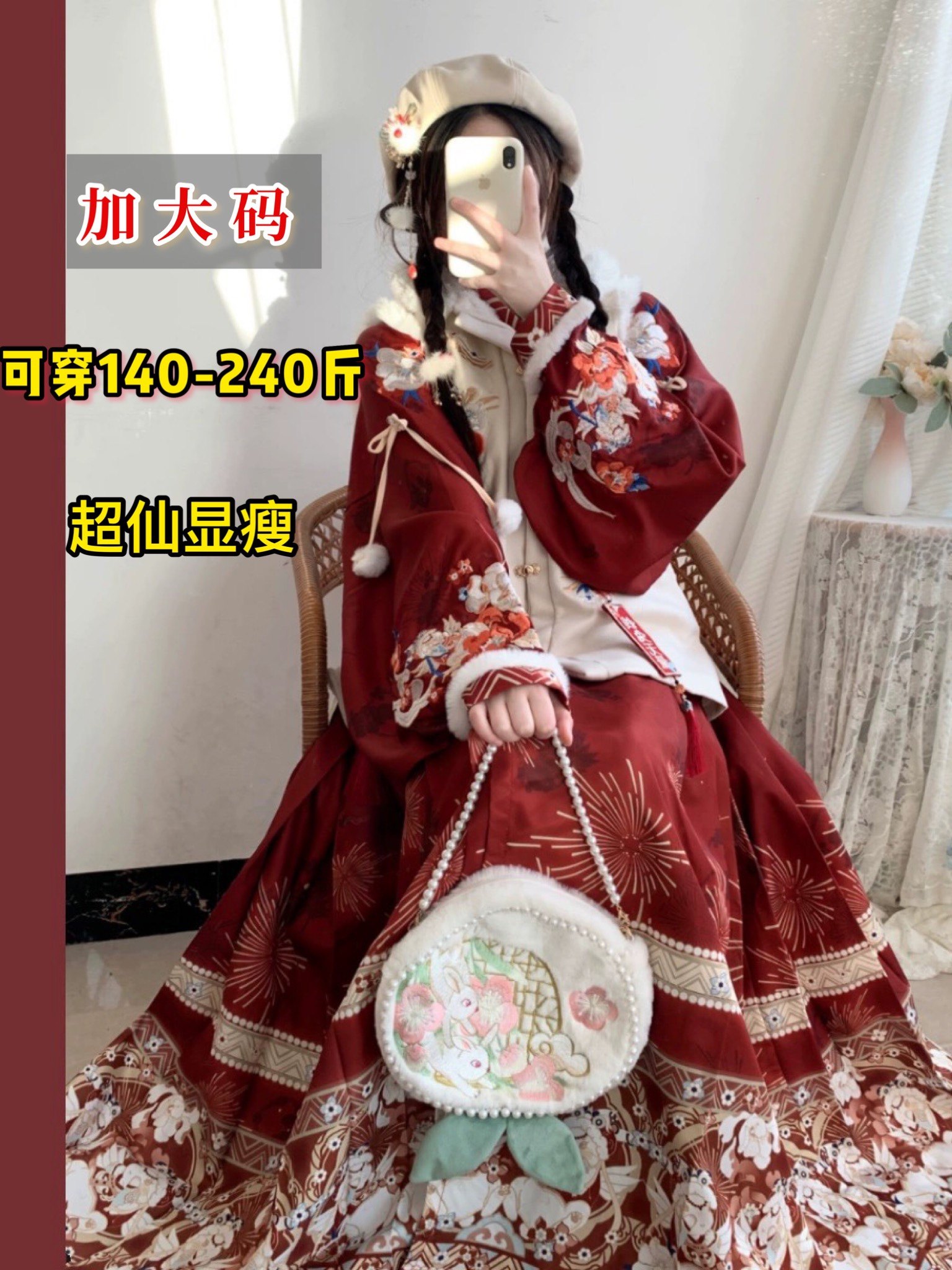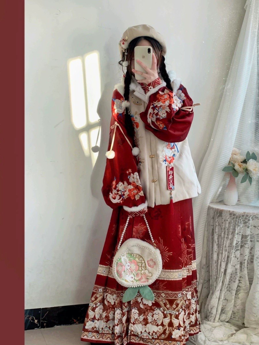 淘宝兰亭叙 大码原创汉服,大码汉服女胖mm200斤明制方领比甲刺绣马面裙加厚拜年服冬季套装