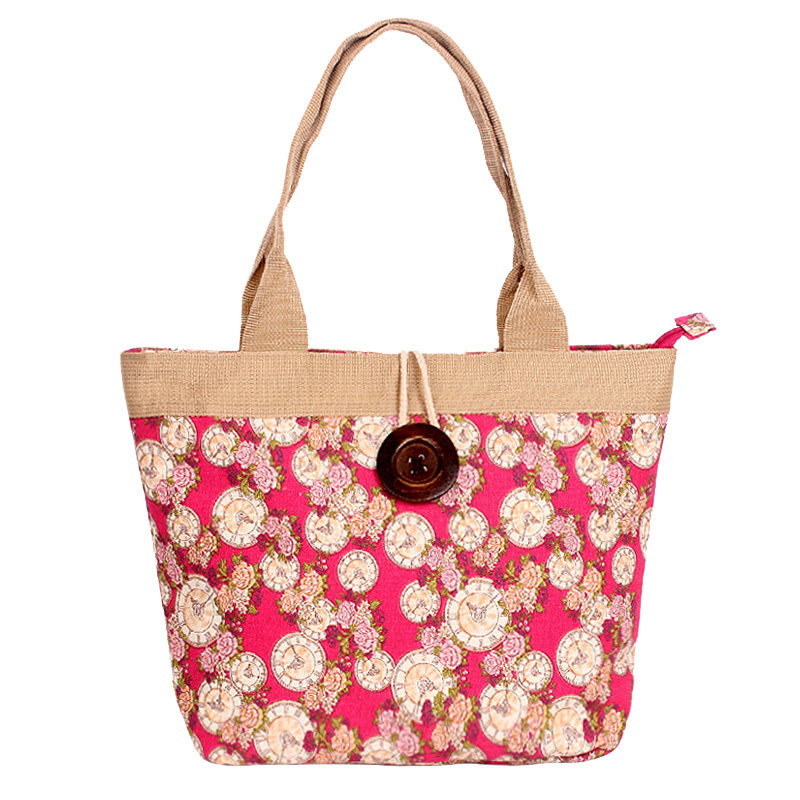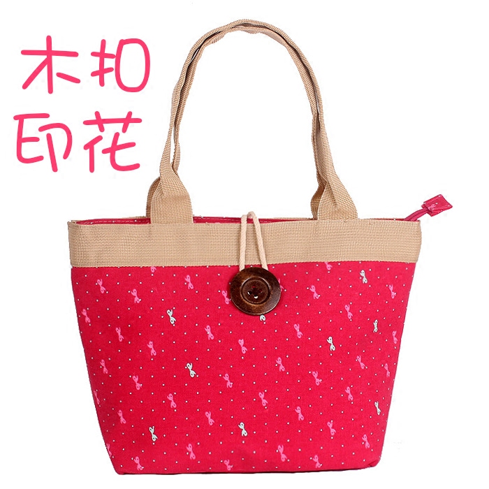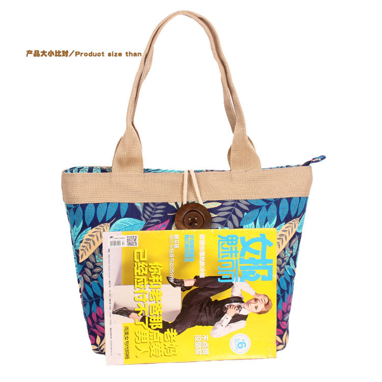 木纽扣帆布包大容量单肩包印花布艺上班包女生购物包袋简约休闲包