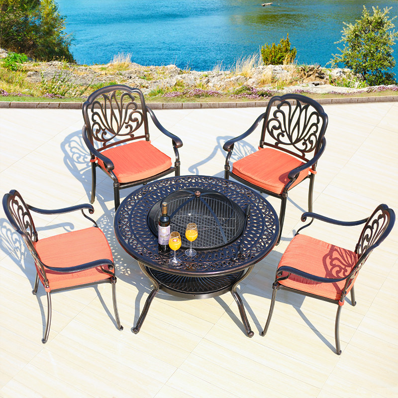 淘宝hisbjlwfwz的小店,铸铝户外烧烤桌椅室外庭院阳台休闲铁艺餐桌椅露天外摆碳烧烤炉桌