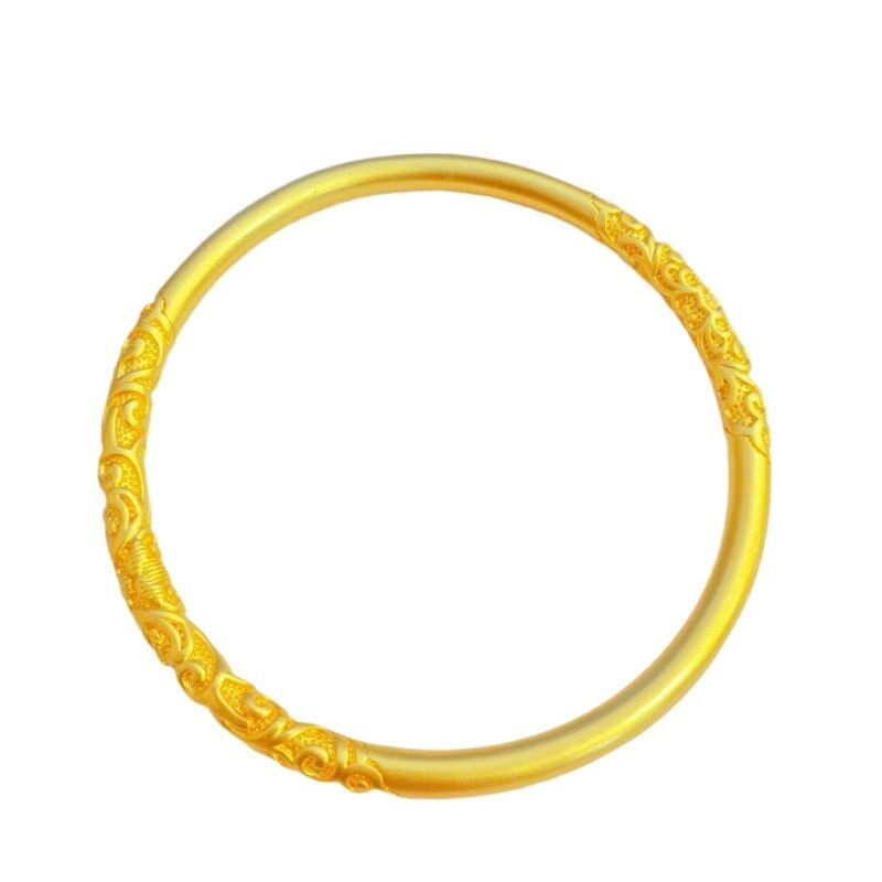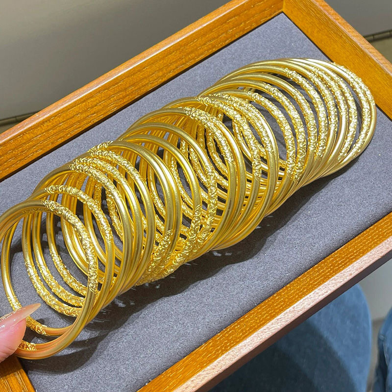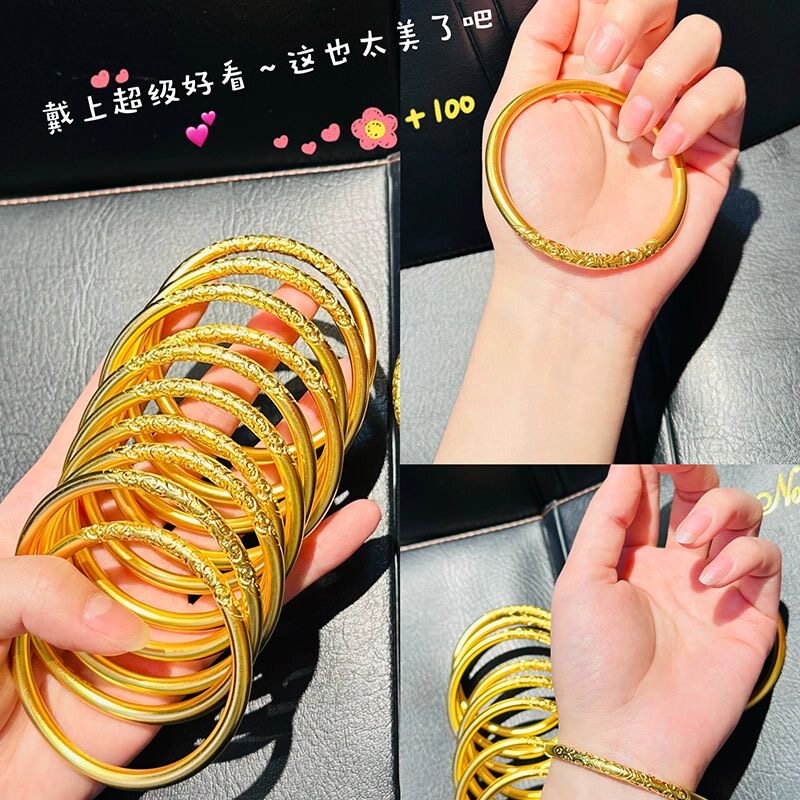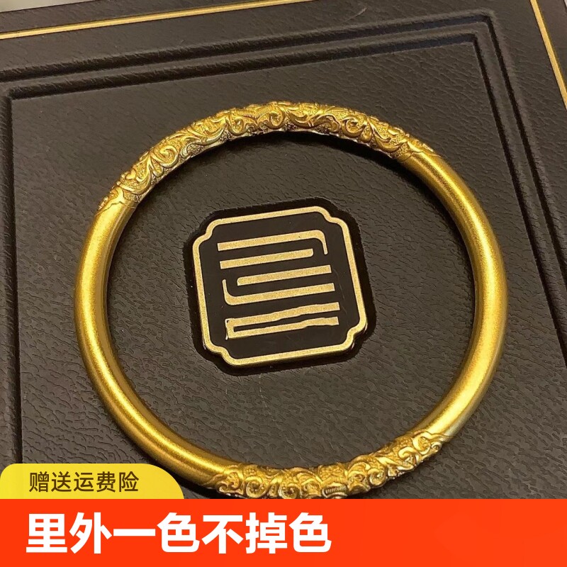 古法黄金色卷草纹手镯仿真复古沙金素圈实心不掉色手环礼物送妈妈
