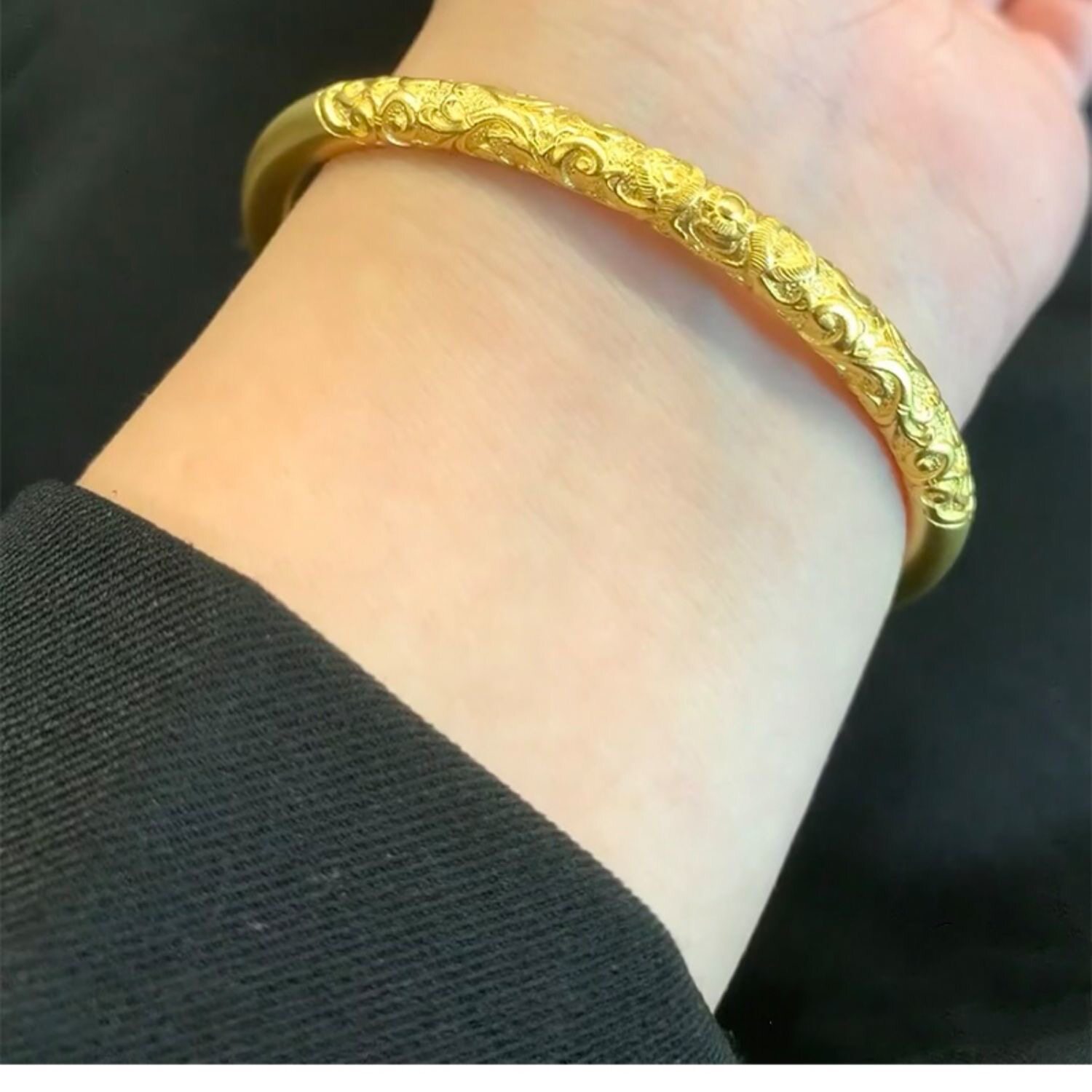古法黄金色卷草纹手镯仿真复古沙金素圈实心…