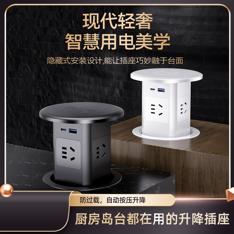 淘宝爱瑞堡智能家居折扣店,气动升降岛台无线快充嵌入式插线板