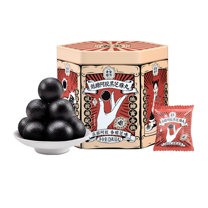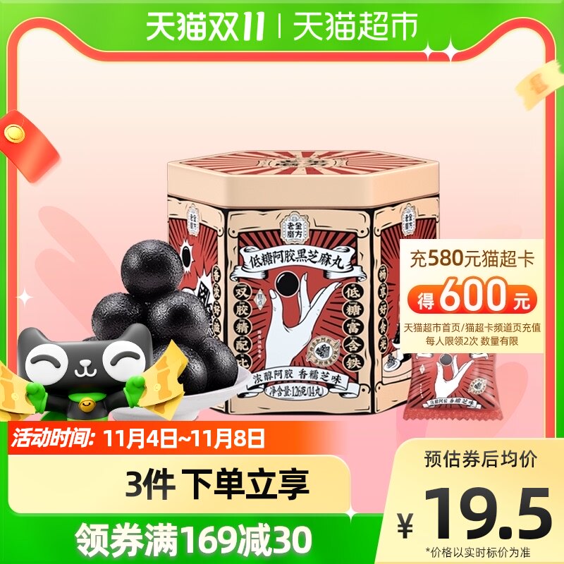 天猫超市,老金磨方低糖阿胶黑芝麻丸夹心软糖,低糖款 特添加阿胶