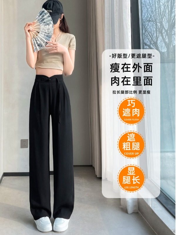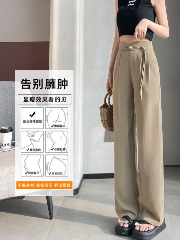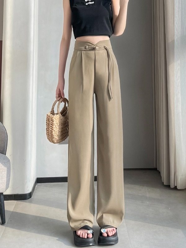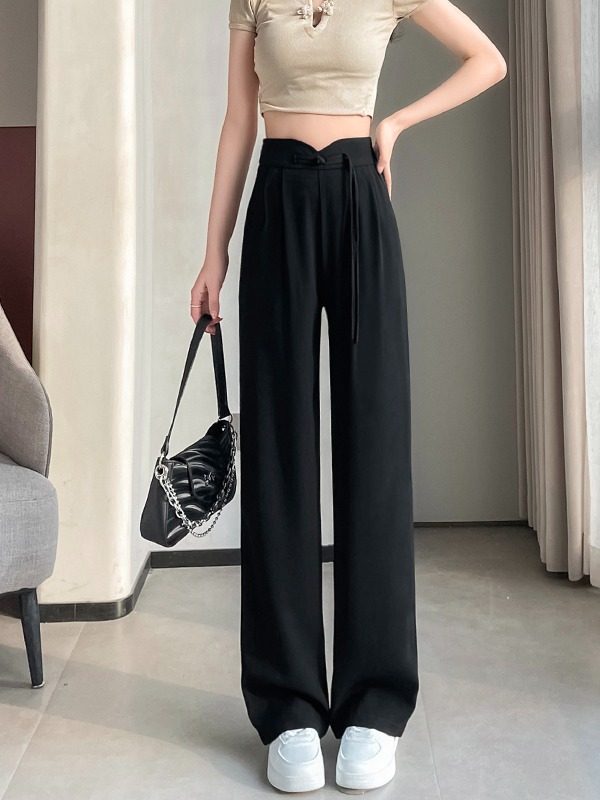 淘宝LL轻奢潮流定制,LOKA LURA 新款高腰显瘦拖地垂感直筒新中式西装开叉阔腿裤女春夏