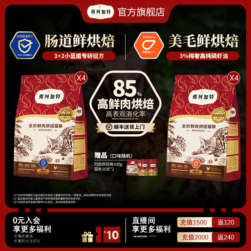 天猫fregate弗列加特旗舰店,弗列加特3%磷虾油美毛亮毛/肠道配方低温烘焙鲜肉猫粮7.2kg囤货装,低温鲜烘焙,3%高机能磷虾油