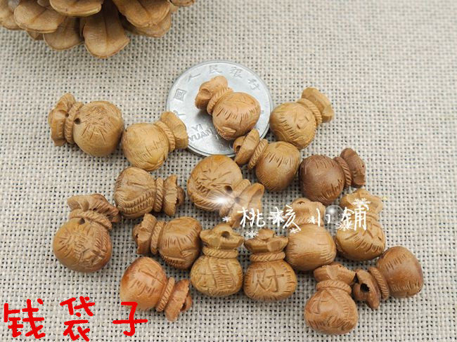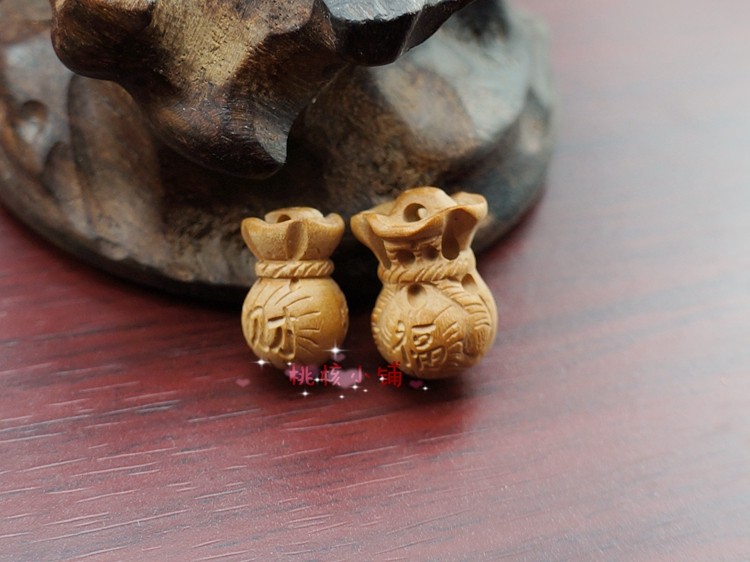 淘宝桃核小铺,桃木福袋小号钱袋子挂饰宝宝手链