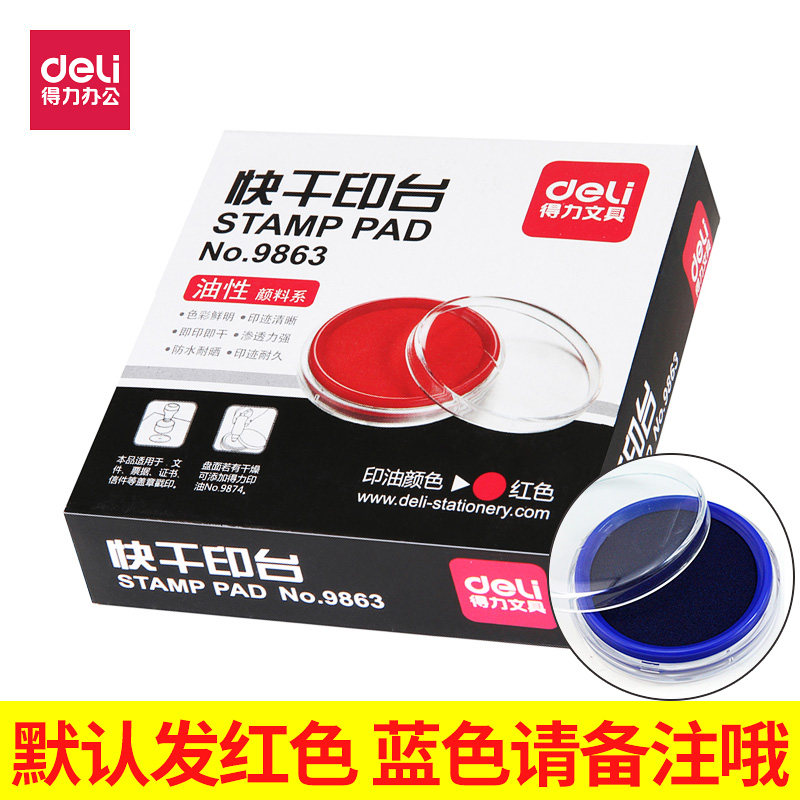 天猫上海诚纳办公用品专营店,得力9863红色蓝色圆形油快干印泥