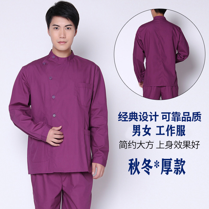 南丁格尔紫色口腔医生工作服立领男女分体套装牙科加厚护工工作服
