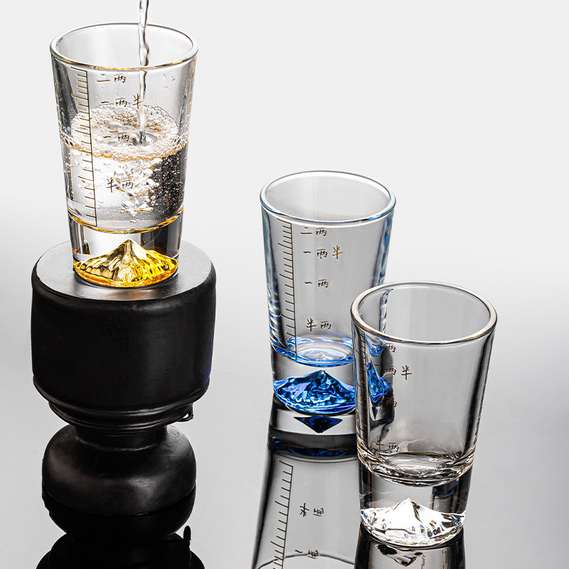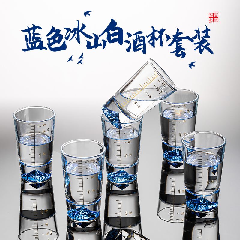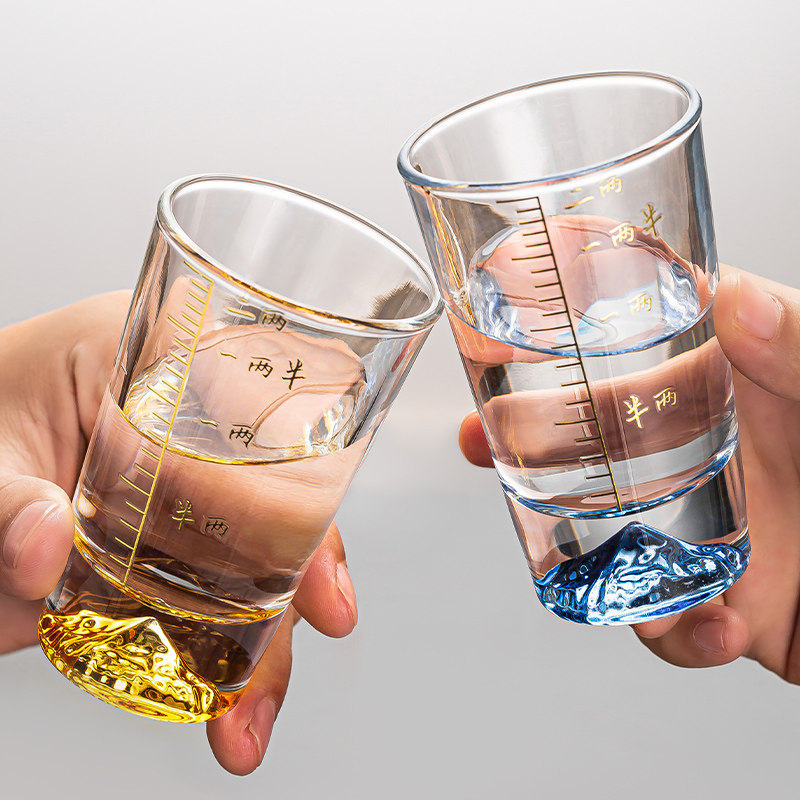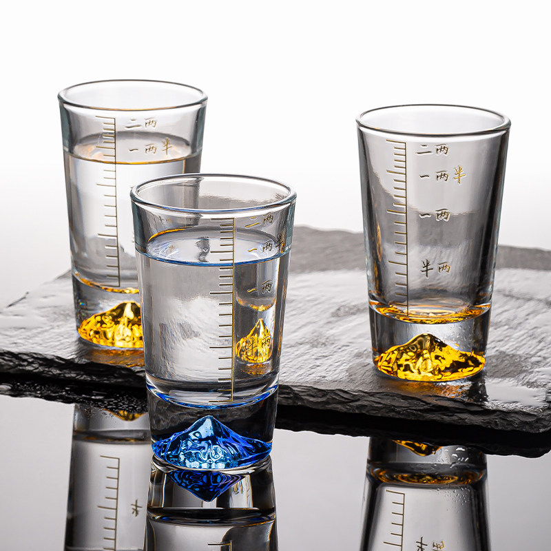 天猫青苹果灵律云专卖店,蓝色山底金色刻度二两杯