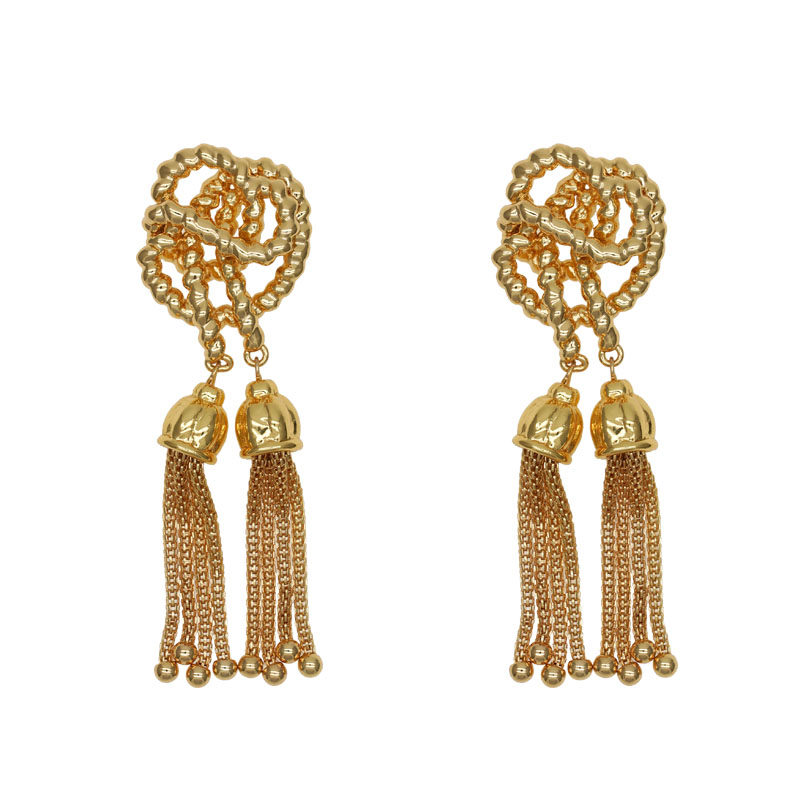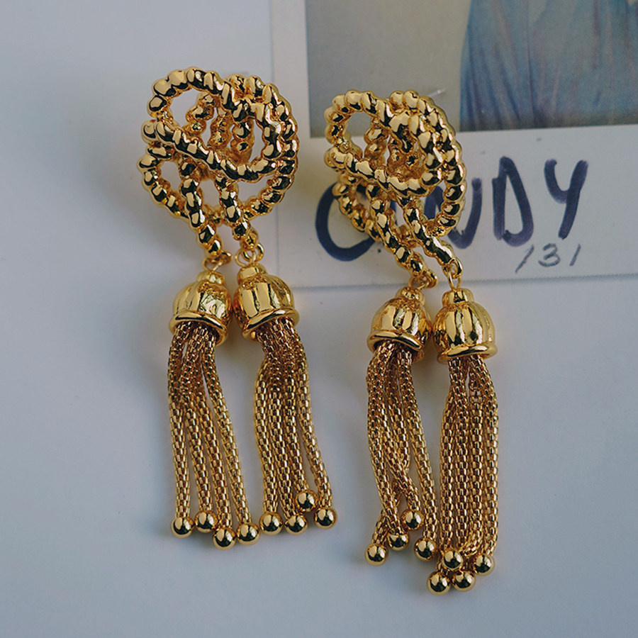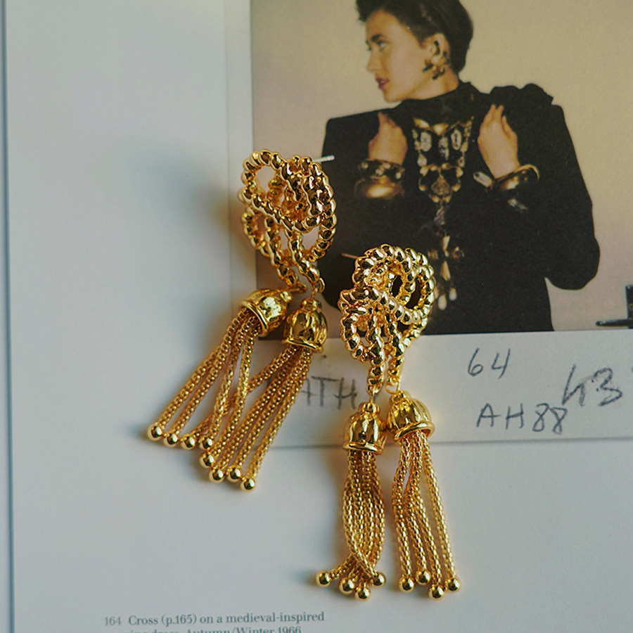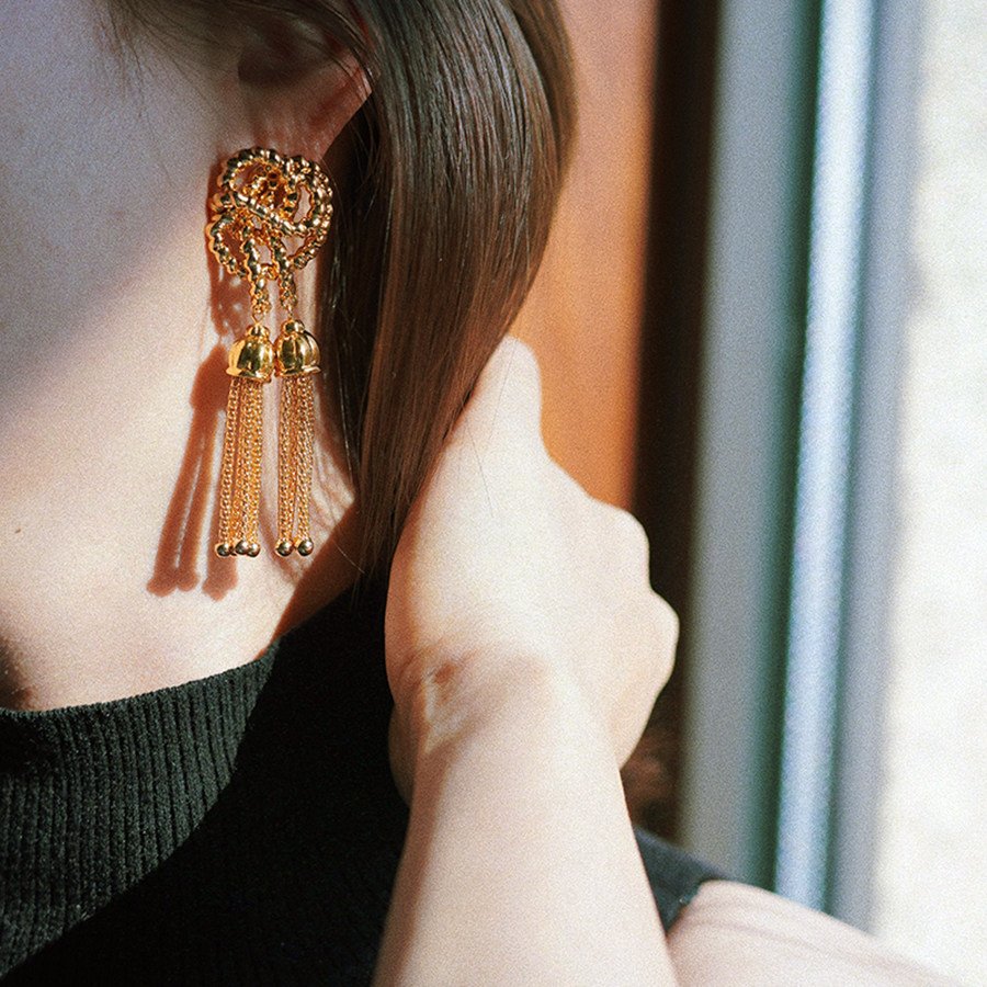 耳边铛5新中式打结流苏耳环夸张长款设计感耳钉金属耳饰气质耳夹
