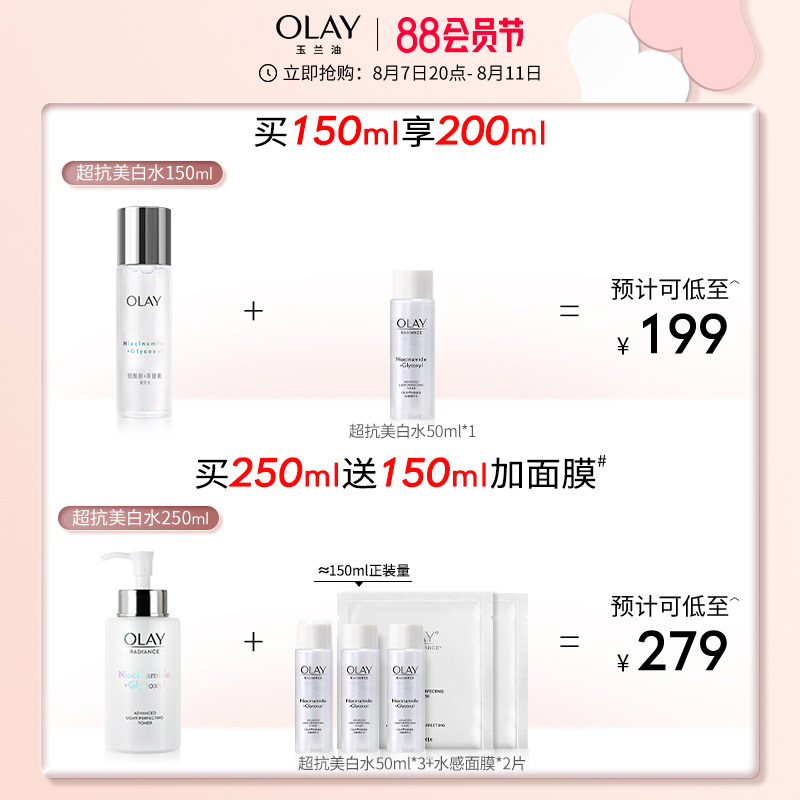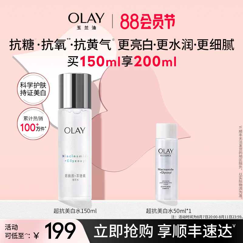 天猫olay官方旗舰店,OLAY玉兰油超抗美白精华水补水保湿提亮湿敷正品夏季化妆水爽肤水,「抗糖*」减黄气 更白 更亮 更水润