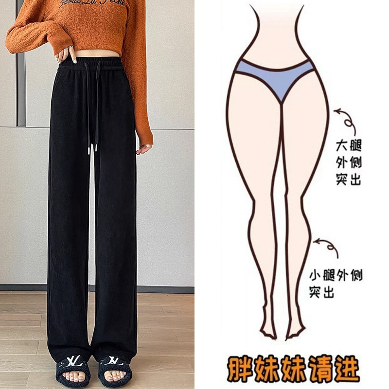 淘宝潮衫定制大码女装,300斤胖mm大码黑色阔腿裤女秋冬加绒高腰遮胯显瘦梨型身材直筒裤