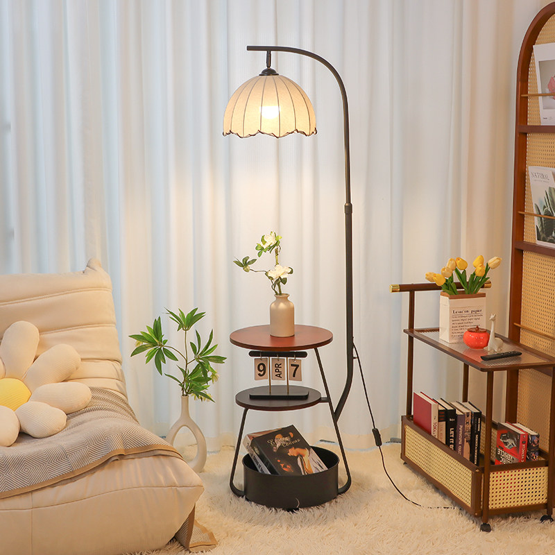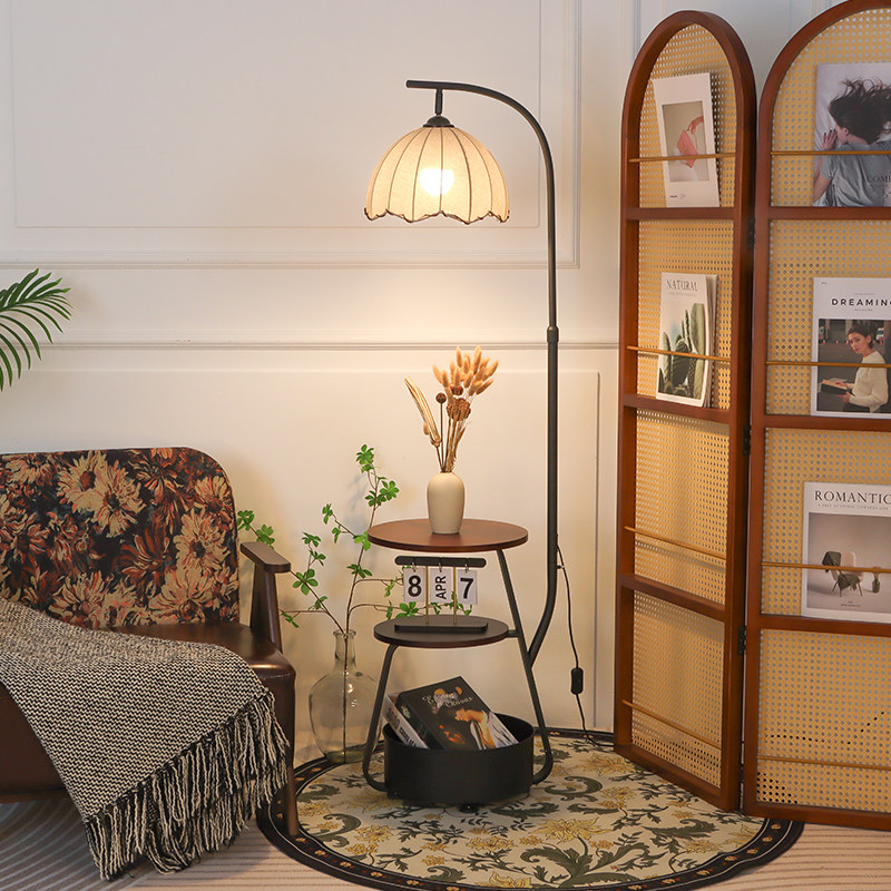 法式中古风落地灯客厅卧室沙发边几置物架氛围艺术床头柜台灯一体