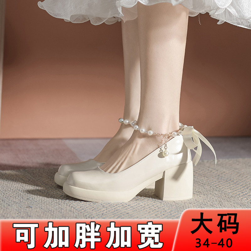 淘宝lisa大码女鞋,女鞋脚宽脚胖单鞋厚底法式复古仙女风加肥加宽玛丽珍高跟鞋配裙子