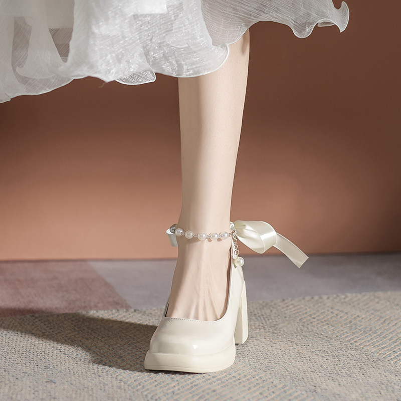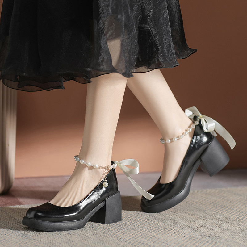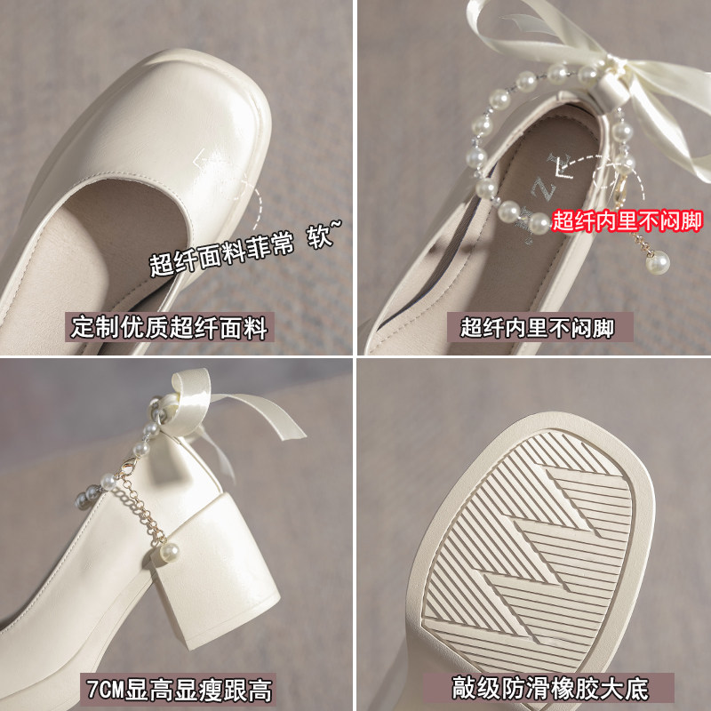 女鞋脚宽脚胖单鞋厚底法式复古仙女风加肥加宽玛丽珍高跟鞋配裙子
