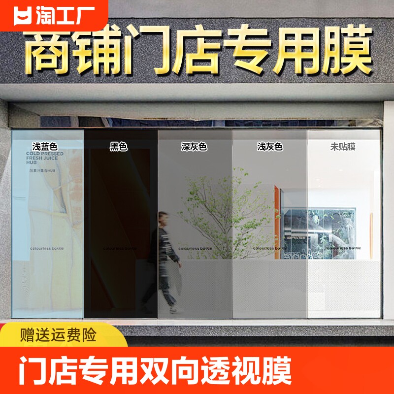 天猫天天特卖工厂店,双向透视隔热膜商铺店面防晒防紫外线透明玻璃贴膜隔热遮光防晒纸,门店隔热遮光膜