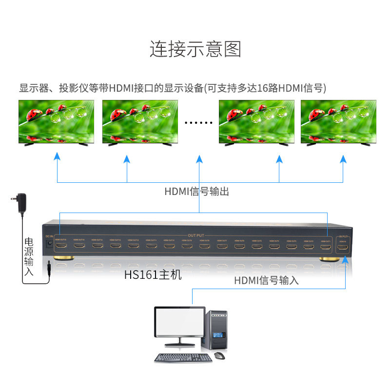 天猫ekl旗舰店,hs161 hdmi分配器1进16出3分频器,金属外壳 散热性好 高清画面显示