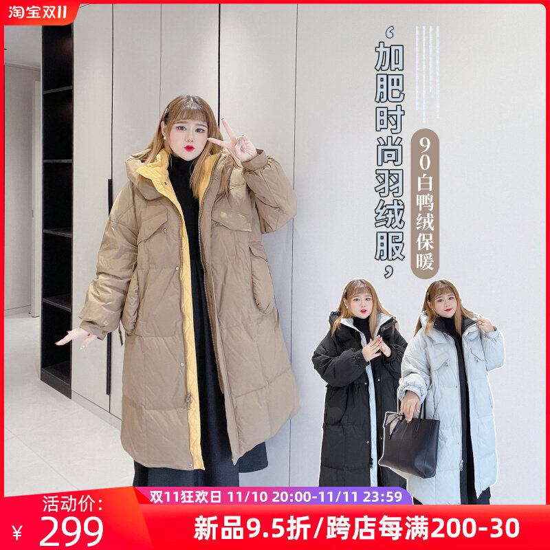淘宝胖仙女莹莹大码女装,胸围150羽绒服胖莹莹大码女装胖mm冬加肥加厚保暖撞色白鸭绒外套