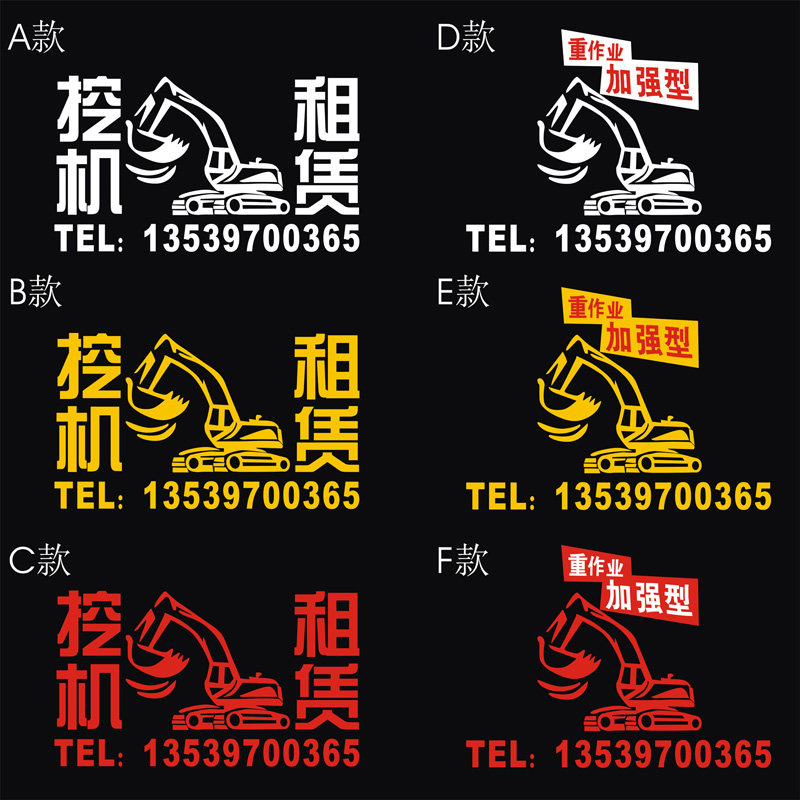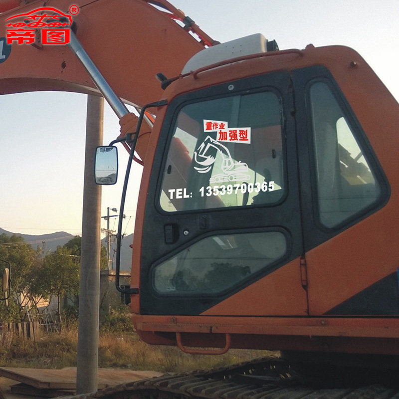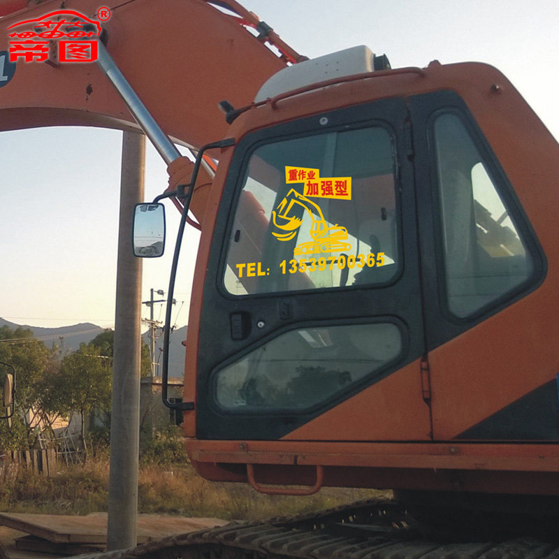 淘宝萃城工厂直销,订做挖掘机自卸车压路机装载机推土机出租租凭赁广告贴纸反光车贴