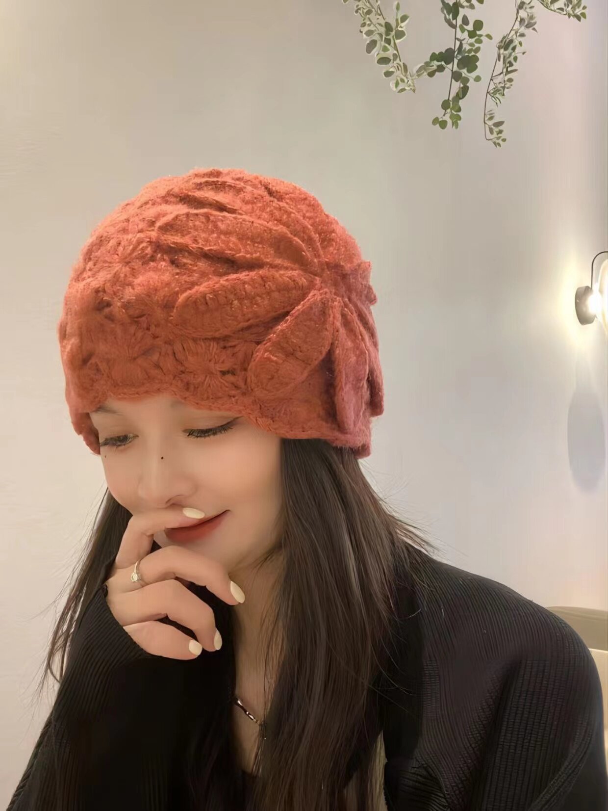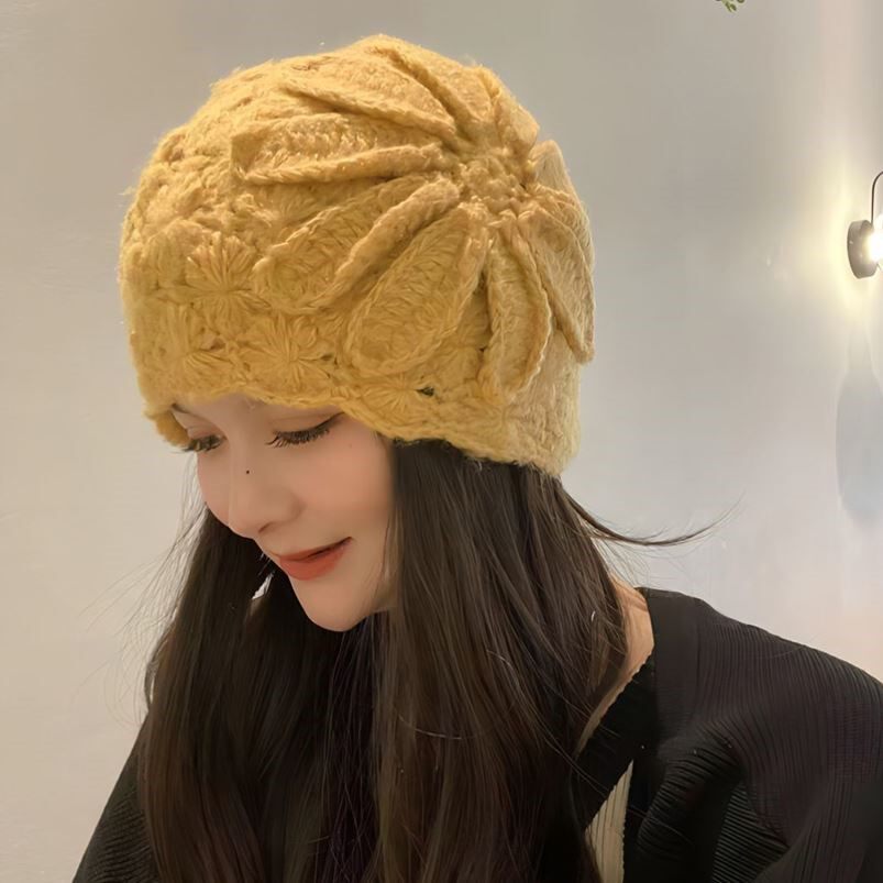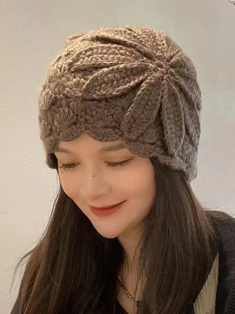 淘宝春日美妆,手工钩花包头帽遮白发毛线帽秋冬防寒保暖帽子女镂空针织帽瓜皮帽