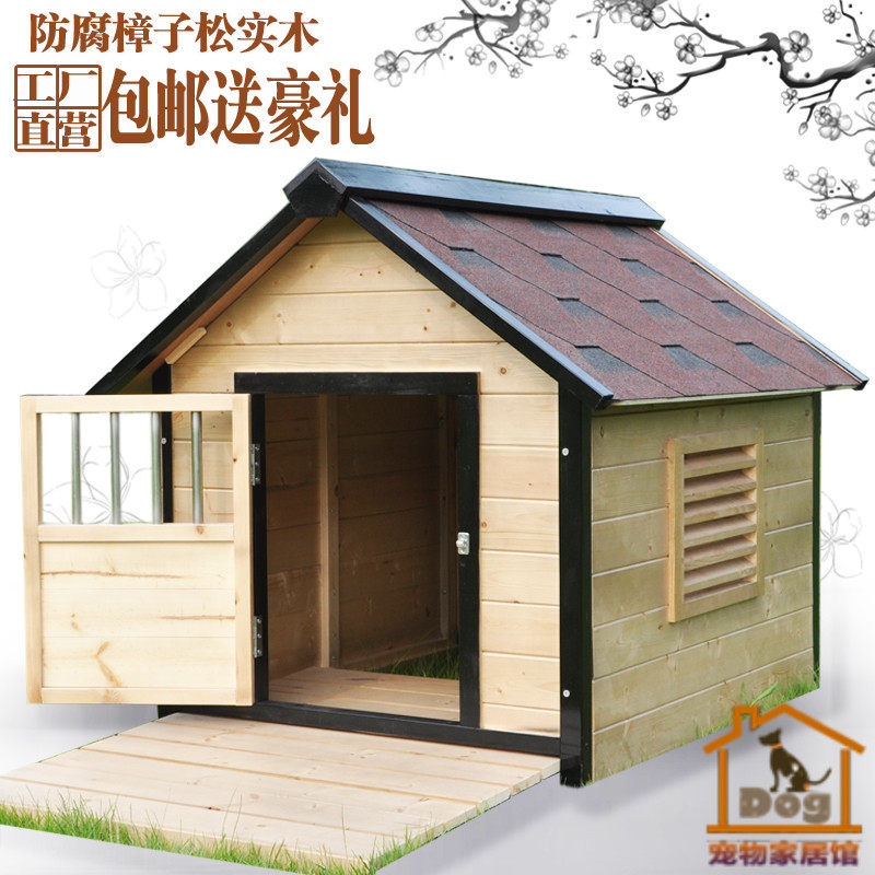 淘宝纽天百货电子商行,新款中大型犬户外防腐防水原木色实木制狗屋木质狗窝狗舍木头狗房