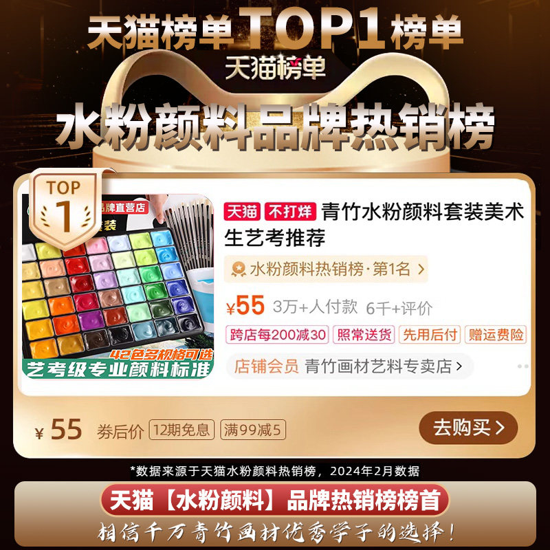 天猫青竹画材永联专卖店,【全网低价】青竹画材水粉套装,【艺考级】颜料套装 “老师推荐 画室专用”