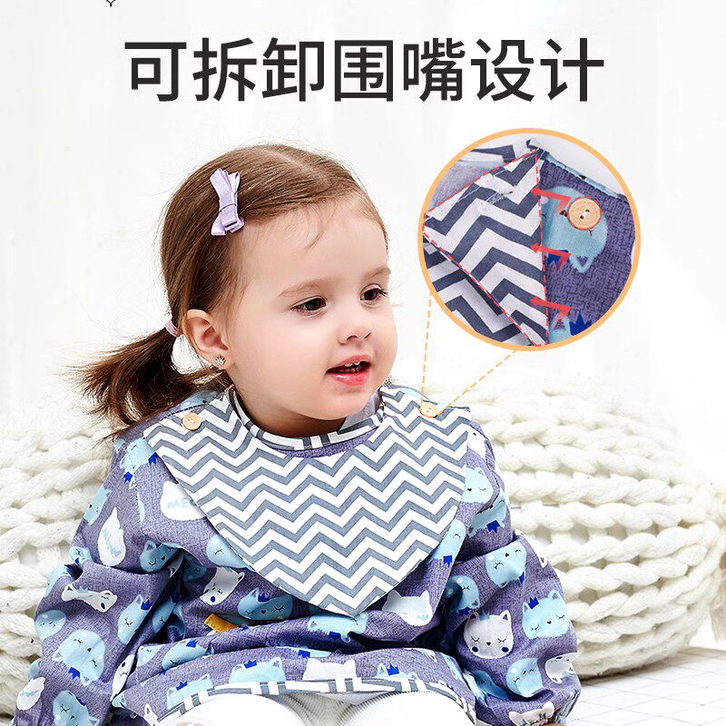 宝宝罩衣吃饭防水防脏婴儿童纯棉长袖围兜反…