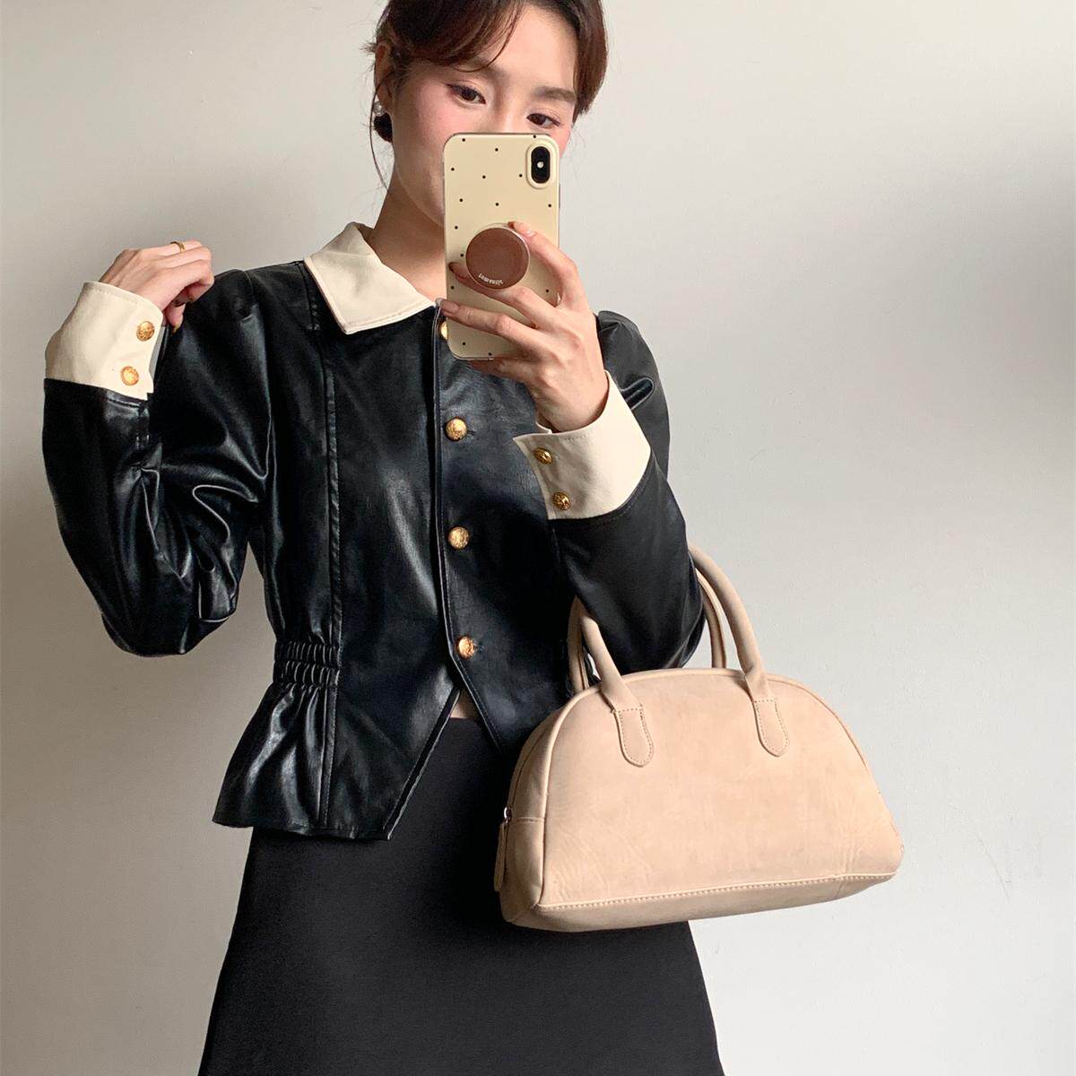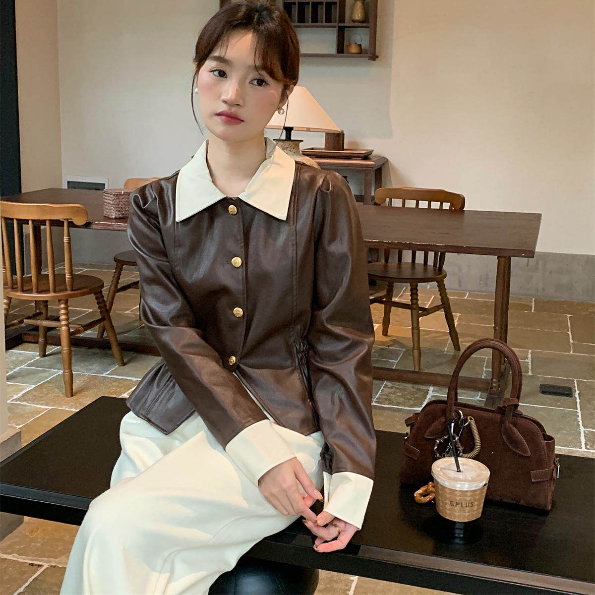 淘宝TENG OOTD 十三行女装 每日上新,十三行法式复古高级PU皮翻领皮衣