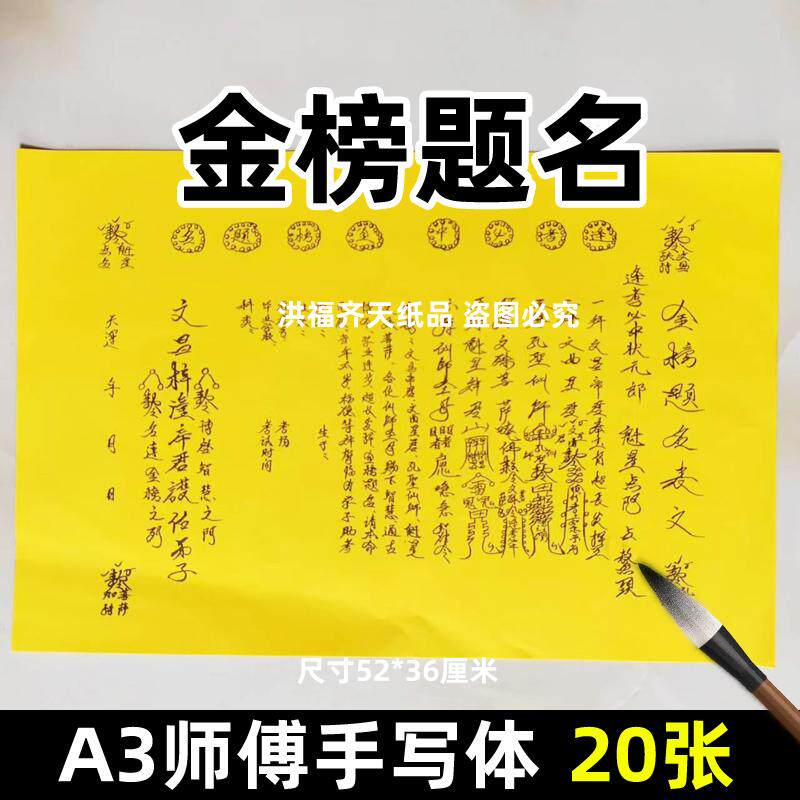 淘宝洪福齐天纸品 工厂店,20张金榜题名表文 考试摆件A3师傅手写字体88号碟文各种文书疏文