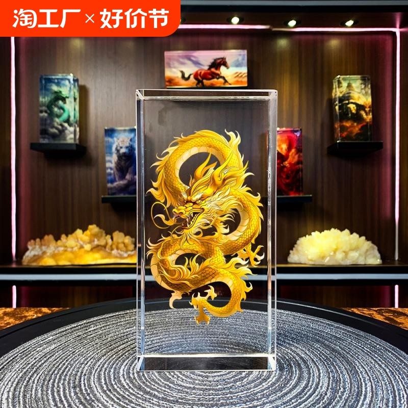 天猫天天特卖工厂店,轻奢艺术招财中国龙虎水晶摆件家居入户玄关乔迁新居装饰工艺礼品