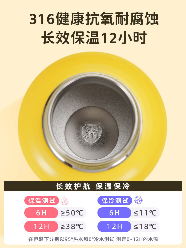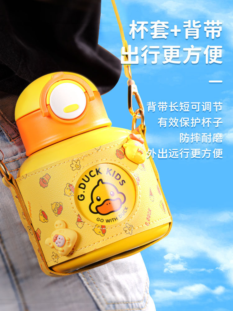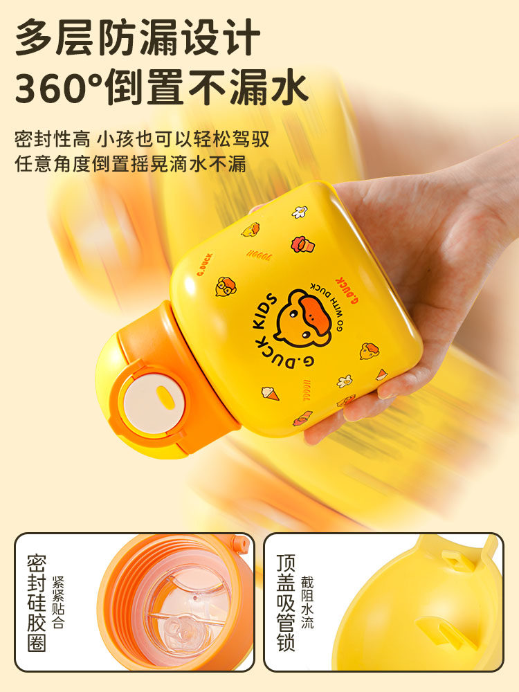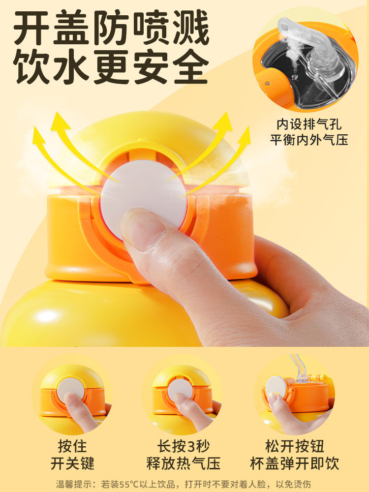 杯具熊小黄鸭儿童保温杯食品级316男女孩吸管杯子上学专用小学生
