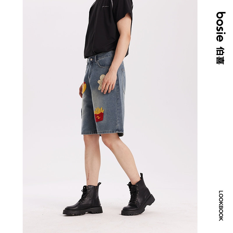 淘宝bosie,bosie牛仔裤五分裤短裤设计感潮