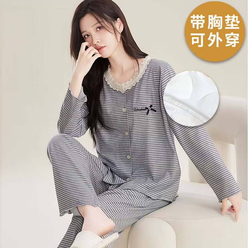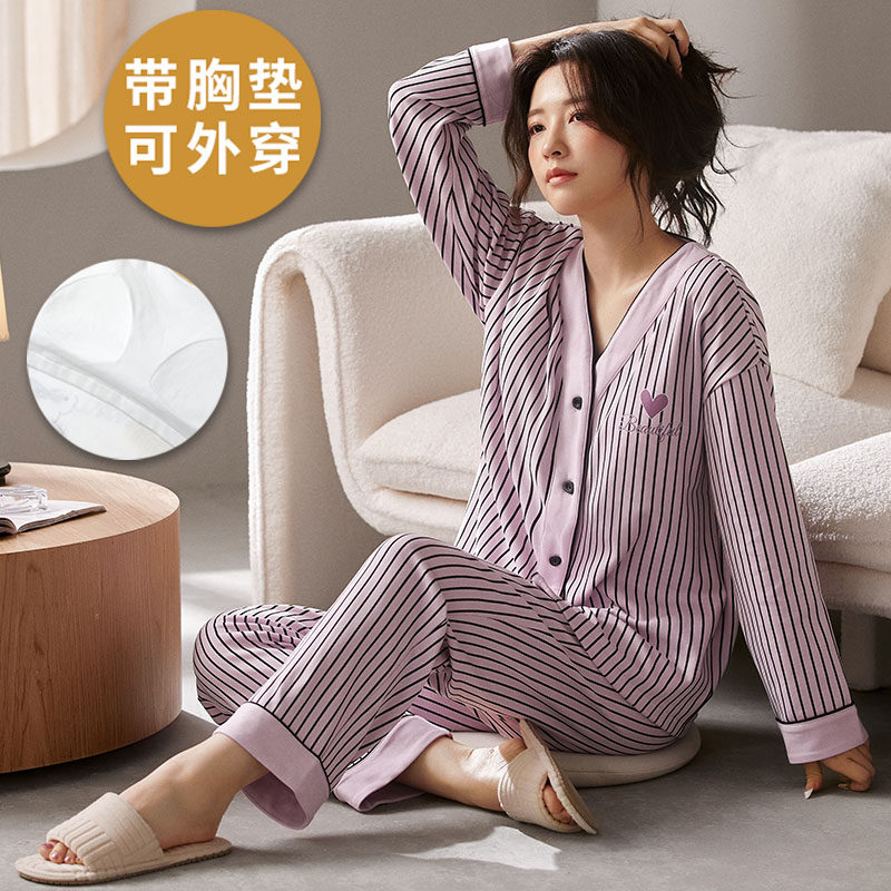 淘宝睡馨怡家居坊,浪莎纯棉带胸垫睡衣女春秋季套装