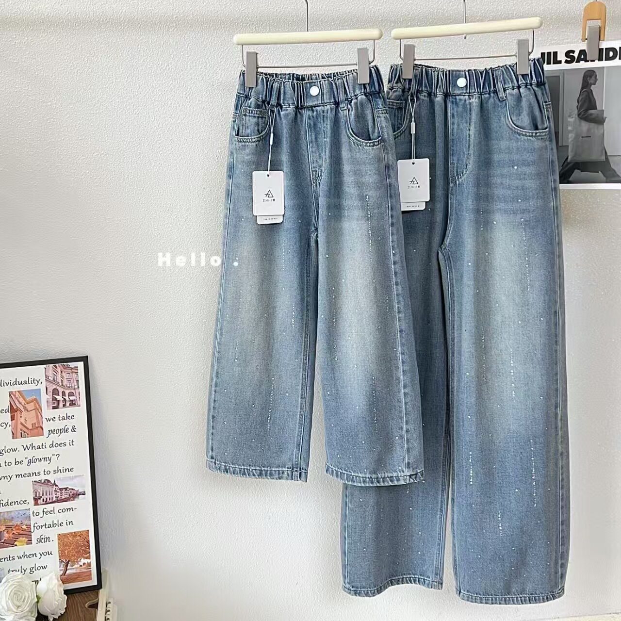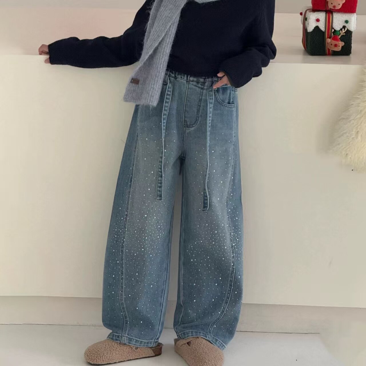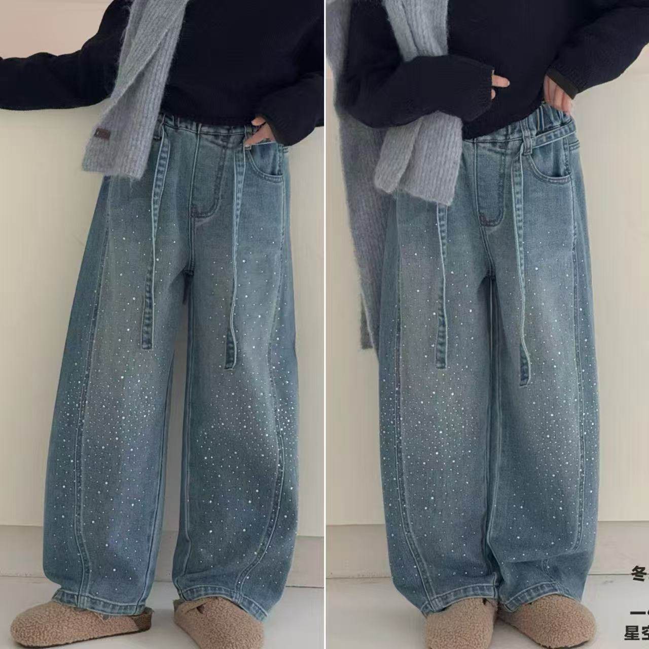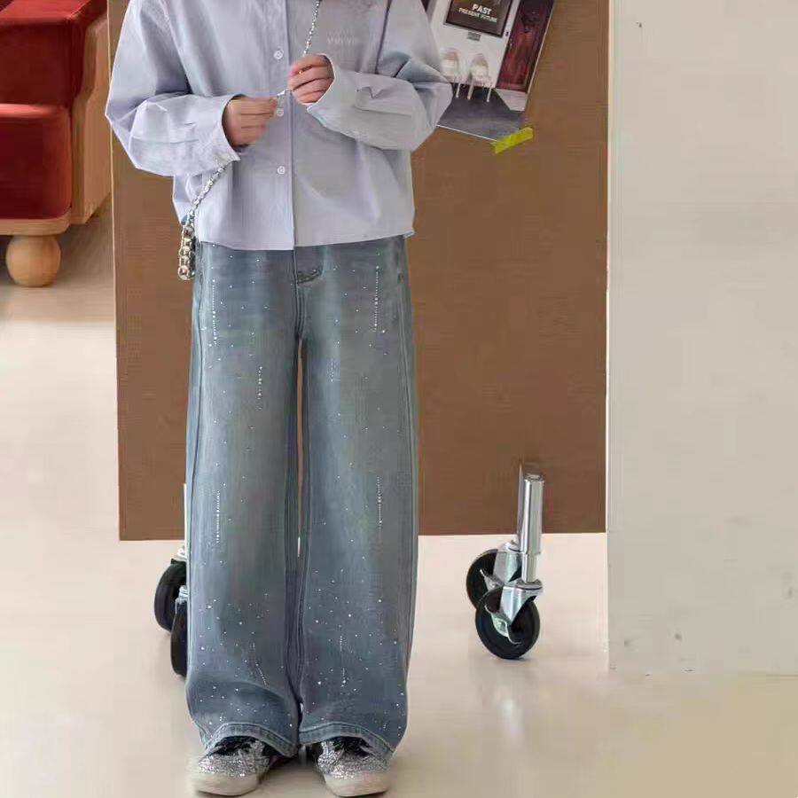 淘宝可乐家实体童装,女童牛仔裤2026春季新款女孩洋气直筒弯刀休闲裤中大童120-170码