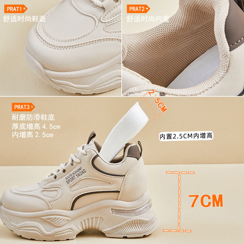 淘宝用心做鞋,女鞋秋季厚底老爹鞋显脚小内增高休闲运动鞋高跟皮面旅游百搭爆款
