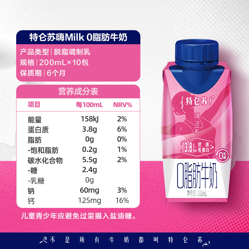 天猫超市,特仑苏嗨milk0脂肪牛奶,脱脂 | 0乳糖 | 优质蛋白