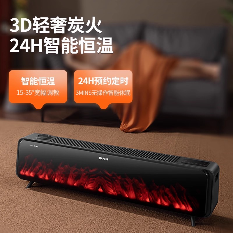 天猫先锋电器官方旗舰店,先锋石墨烯踢脚线取暖器家用仿真火焰壁炉客厅加湿干衣智能电暖气