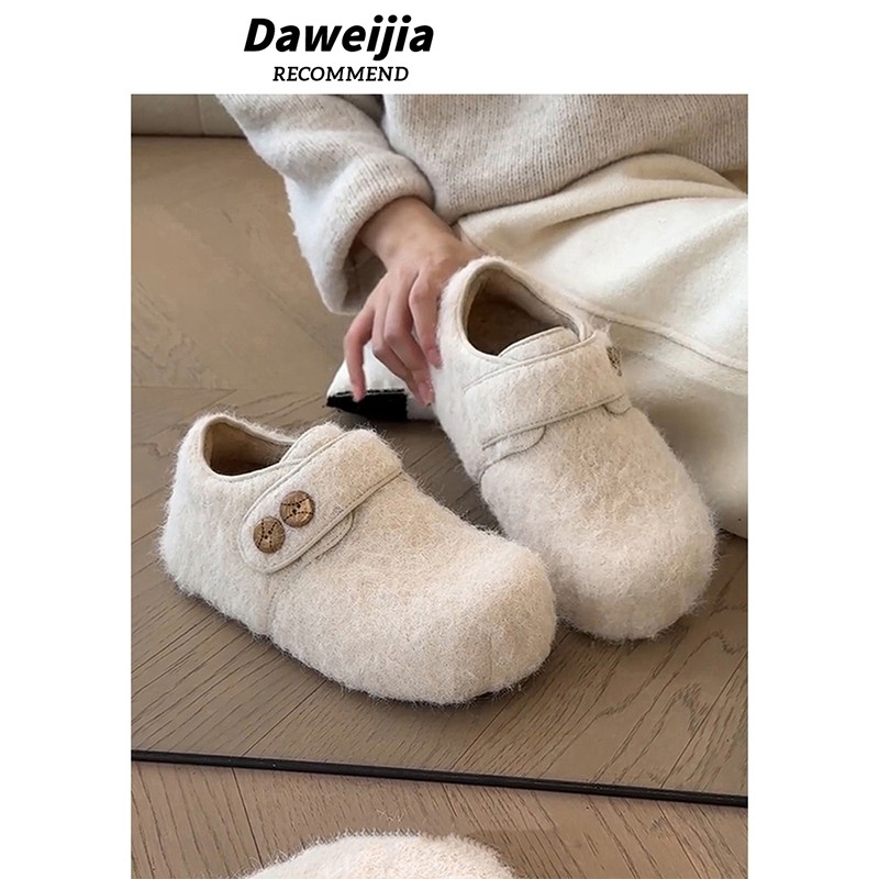 天猫天天特卖食品直营,白色复古加绒全包勃肯鞋女2025新款冬季外穿厚底增高保暖毛毛棉鞋