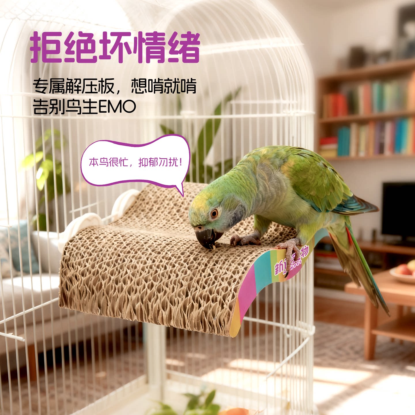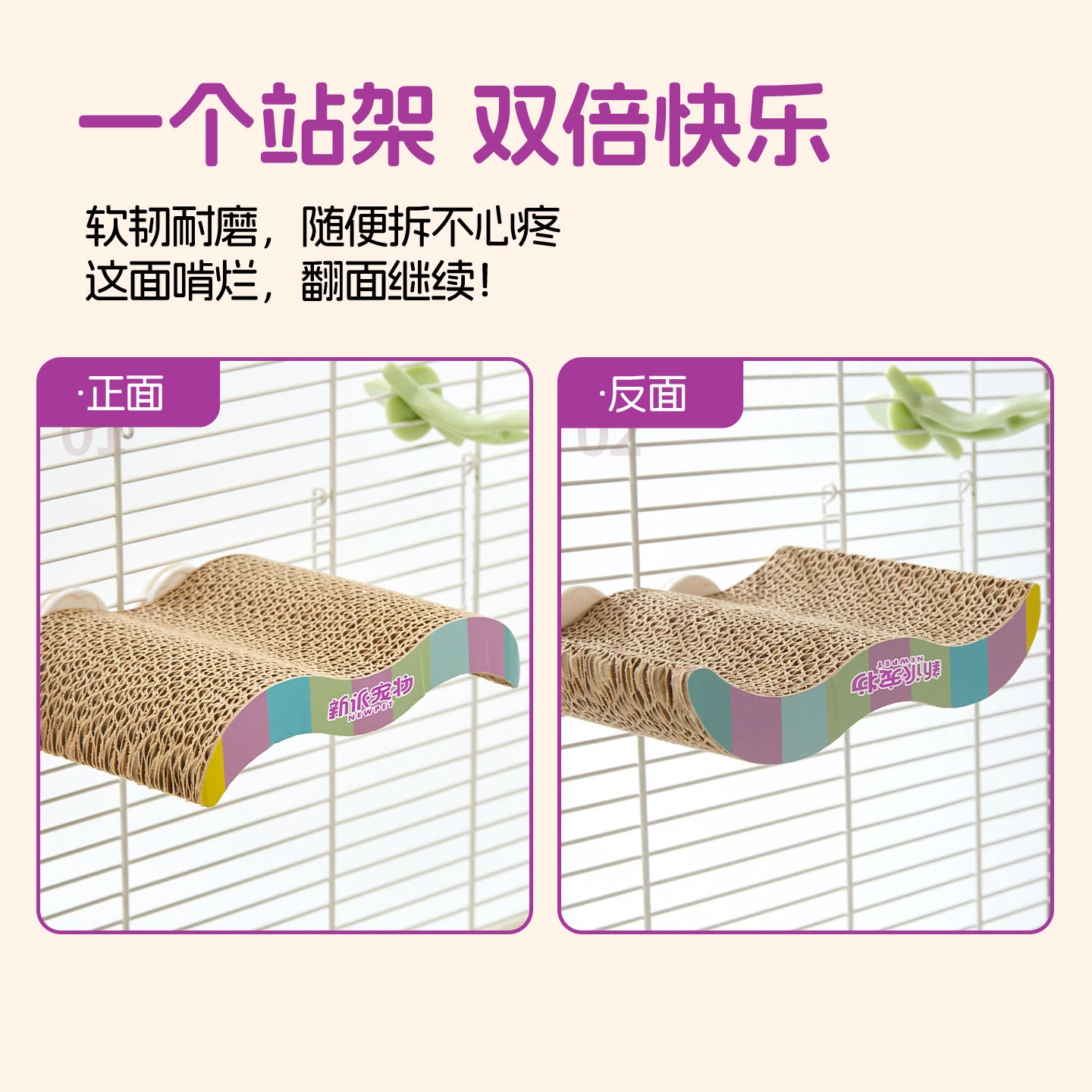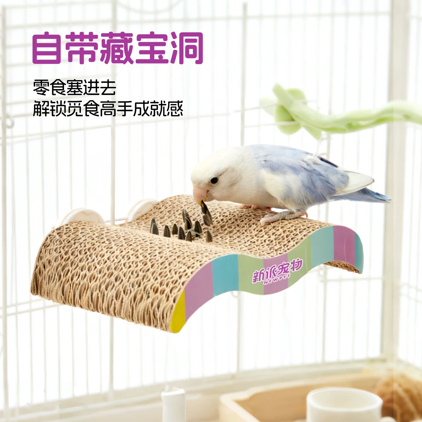 天猫4649052124650500280,新派宠物鹦鹉鸟用双面瓦楞纸站台,双面抗造,啃咬解压,解锁觅食玩法
