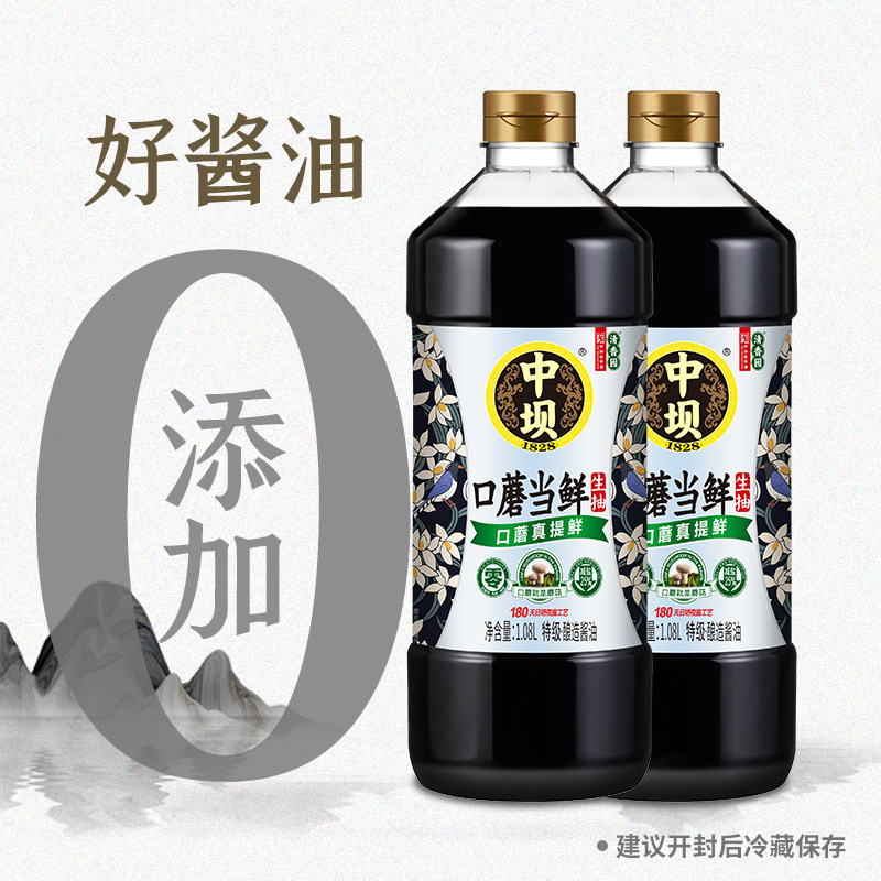 天猫中坝旗舰店,【中坝】口蘑当鲜零添加酿造酱油180天老字号1.08L*2特级薄盐生抽,中坝酱油 川菜味魂
