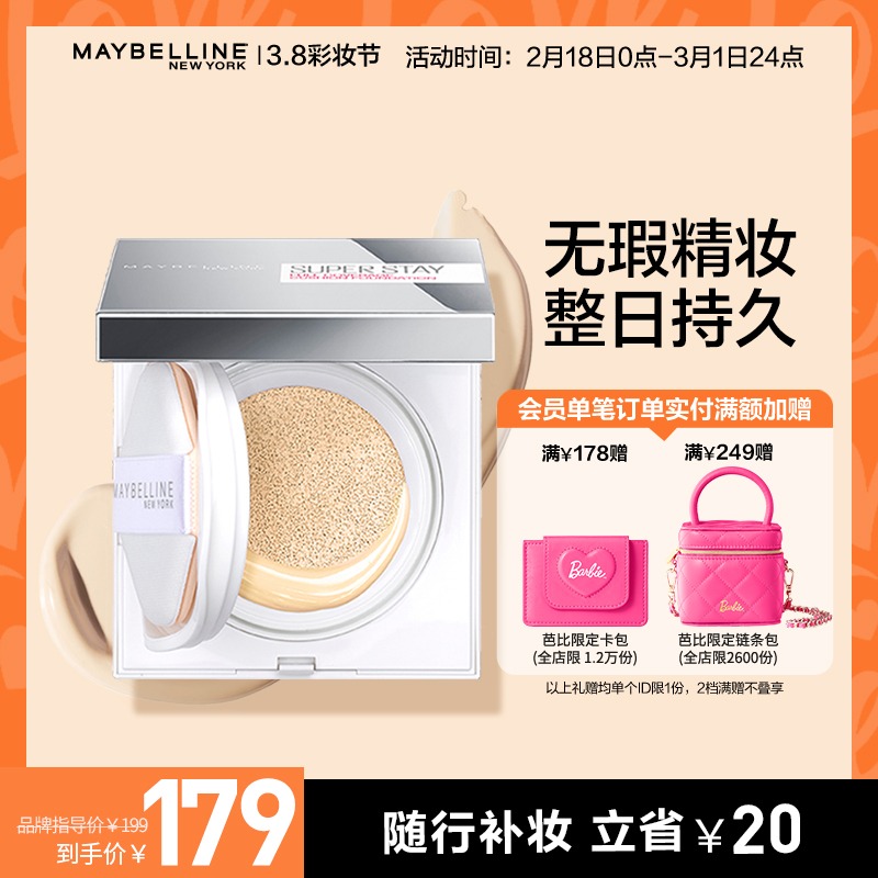 天猫美宝莲旗舰店,【38彩妆节】美宝莲纽约SuperStay巨持妆气垫bb霜控油不脱妆正品,一拍高能遮瑕,时刻哑光无瑕肌