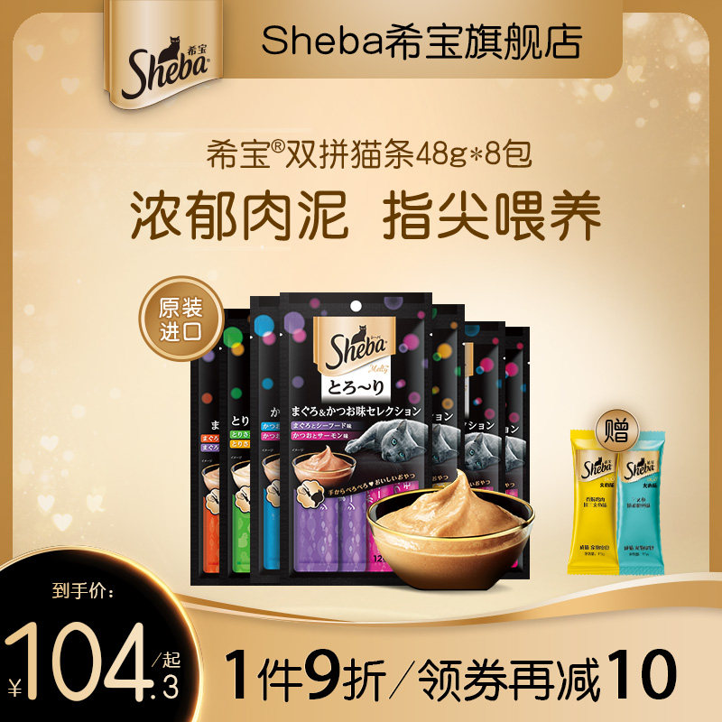 天猫sheba希宝旗舰店,sheba希宝猫条100支整箱猫咪零食成猫湿粮幼猫营养猫罐头无诱食剂,浓郁肉泥 指尖宠爱