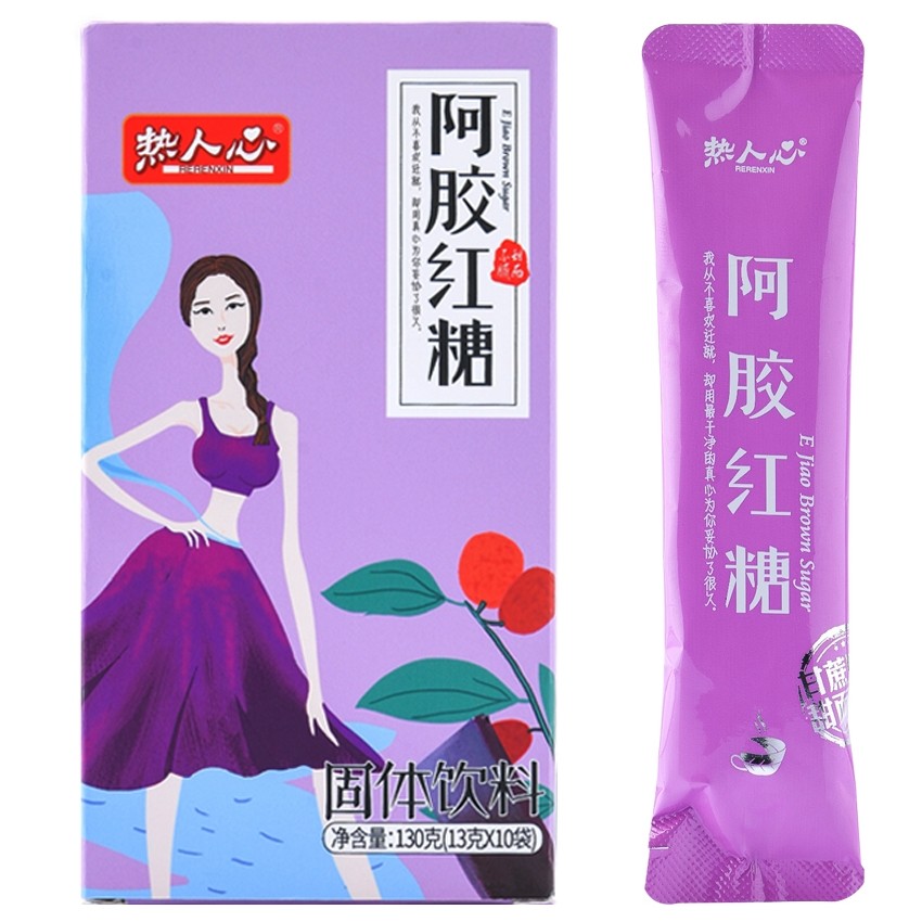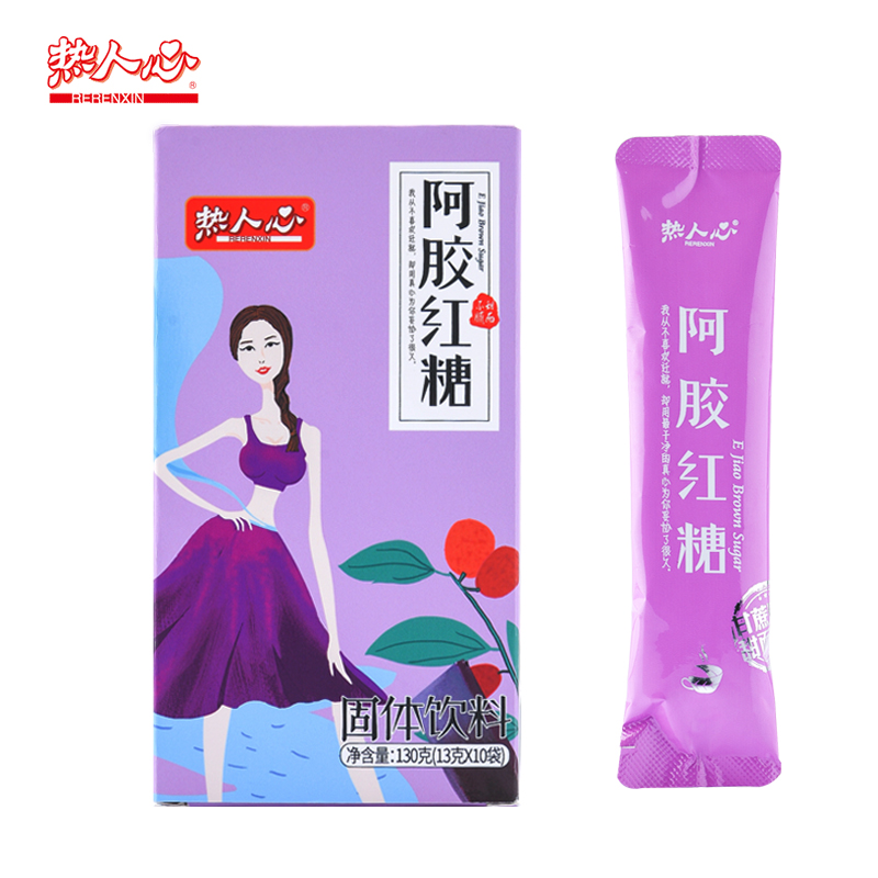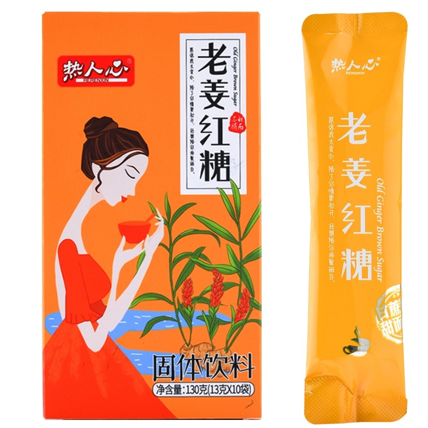 热人心阿胶红糖老姜红糖中式冲饮独立包装速溶姜汤女生茶130g/盒