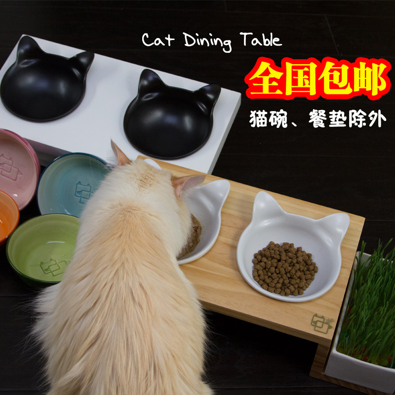淘宝渐霏爱宠,小野豹胖胖猫碗实木原木猫咪陶瓷碗